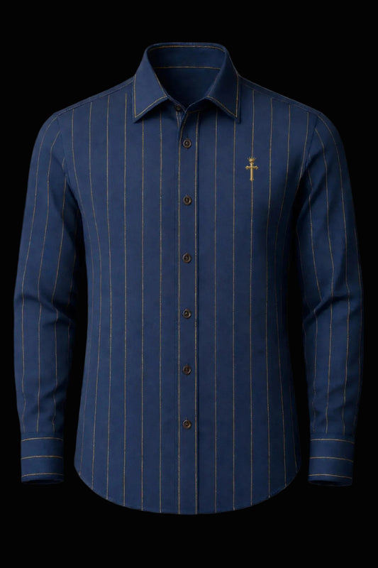 Christian Royal Blue and Gold Pinstripe Shirt