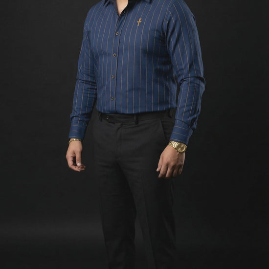 Christian Royal Blue and Gold Pinstripe Shirt